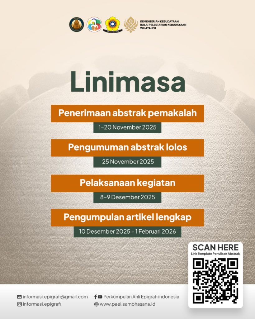 Nah, buat kamu yang tertarik dengan sejarah, kebudayaan, dan penelitian epigrafi — ini saatnya kamu ikut ambil bagian! 📝 Yuk, kirim tulisan dan berkontribusi bareng para ahli buat ngulik lebih dalam tentang jejak peradaban Śrīwijaya dan perkembangan studi epigrafi di Indonesia. Bareng kita, majuin riset epigrafi Indonesia ke tingkat berikutnya!
