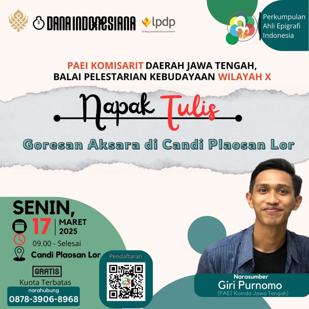 Acara “Napak Tulis” yang diselenggarakan oleh PAEI Komisariat Daerah (Komda) Jawa Tengah kali ini berlangsung dengan penuh semangat dan antusiasme. Kegiatan ini merupakan hasil kerja sama antara PAEI Komda Jateng dengan Balai Pelestarian Kebudayaan (BPK) Wilayah X. Acara yang bertujuan untuk mengenalkan dan mendalami sejarah serta aksara Jawa Kuna ini bertempat di Candi Plaosan Lor […]